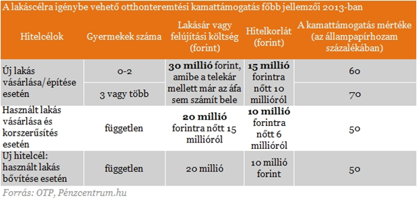 A lakásvásárlást érintő legjelentősebb változást az államilag támogatott lakáshiteleknél hozta a 2013-as év. Itt nagyon kedvező elmozdulás történt, hiszen megemelték a maximálisan támogatott felvehető kölcsönösszeget, valamint a vásárolható ingatlan értékhatárát is, a kamattámogatás korábban évről-évre csökkenő mértékét pedig a kiindulási szinten állandósították. A módosításoknak köszönhetően nemcsak több százezer forintot lehet megspórolni a korábbi állami támogatású hitelhez képest, hanem jóval kevésbé van megkötve a keze az ingatlan kiválasztását illetően annak, aki igénybe venné az állami mankót otthona megteremtéséhez.